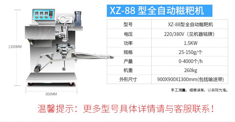 旭眾牌XZ-5000A無餡糍粑機是一款生產(chǎn)香甜糍粑的設(shè)備;設(shè)備入料斗容量大,采用雙絞龍送料、變頻無級高速,產(chǎn)品大小、出皮厚度調(diào)節(jié)自如、使用方便,精確度高,出皮均勻、暢通。產(chǎn)品一次成型,所出產(chǎn)品外形大小統(tǒng)一,遠(yuǎn)比手工制作美觀、便捷。