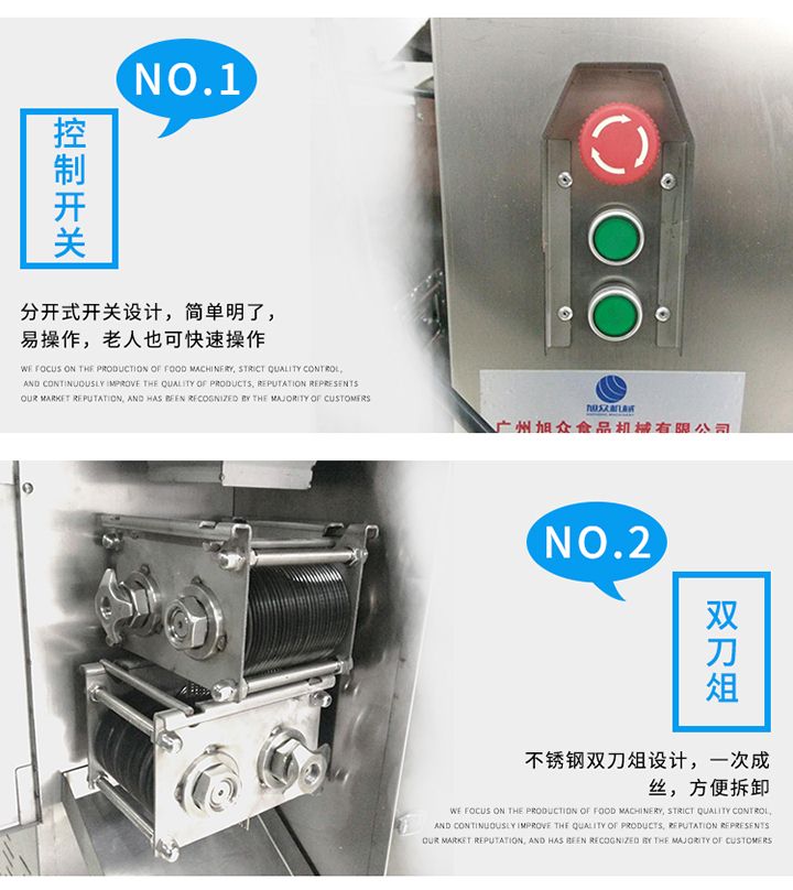 旭眾XZL一次成型切絲機是我廠精心研制出的新產品,該機時尚、簡潔、清洗便捷、操作安全,配有風冷馬達,適合連續作業;高質量全不銹鋼機身。適應于酒樓、超市、工廠、學校、賓館、食堂等各種肉類加工企業和個體用戶使用。?