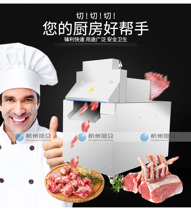 XZL-600自動(dòng)切骨機(jī)適用于小型食品加工廠、屠宰場(chǎng)、肉類加工廠、超市等單位使用。適用于中小型動(dòng)物骨頭,排骨,冷凍肉,凍雞、凍魚、鮮骨頭、鮮肉等加工設(shè)備。切骨機(jī)接觸食品的部位及外觀部位均采用不銹鋼或耐腐蝕材料制造,符合食品衛(wèi)生要求。本機(jī)設(shè)計(jì)合理,清洗方便,無損耗,采用特殊刀具切骨,不產(chǎn)生碎骨,較大程度保護(hù)了您的利益,且全自動(dòng)送料,操作簡(jiǎn)單,大大的減輕工人勞動(dòng)強(qiáng)度,提高了安全系數(shù)。不易會(huì)傷到手,具有效率高,能耗低,操作安全,外形美觀等特點(diǎn)。