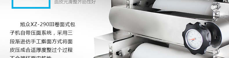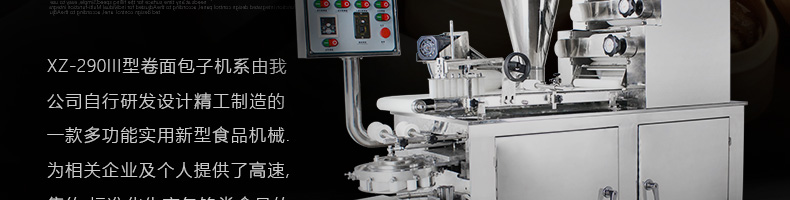 XZ-290III卷面式包子機,可生產各種不同餡料的包子、各式包餡食品,如豆沙包、南瓜餅、肉包、小籠包、水晶包等幾十種包餡制品。適用于個體戶、食品廠、學校等單位食堂。可滿足不同客戶群體。免費提供工藝技術。