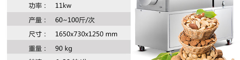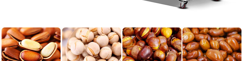 8.適合加工各種干果和堅果類,如;板栗、花生、瓜子、松籽、榛子、杏仁、菜籽、咖啡豆、紅棗、芝麻、、核桃、各種豆類、麥類、米類等。適用于在食品加工廠、農貿市場、食品專賣店、連鎖店等處定點加工和經營,符合生產、創業致富的需要。