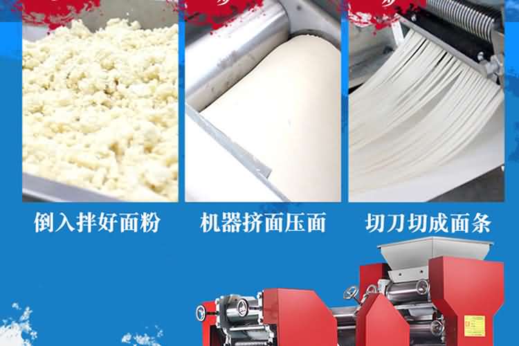 MT5-280面條機 (掛面機或濕面機) | 外形尺寸:2300×620×1400mm 產(chǎn)量:230kg/h 軋輥:98×300mm 功率:3kw 軋輥組數(shù):5組 機重:500kg | 鐵外殼 |