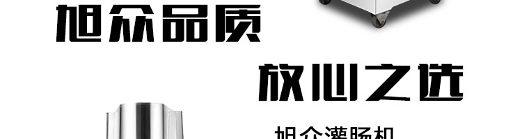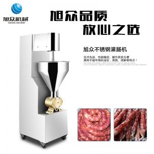 旭眾牌SZ-200灌腸機(jī)使用敞開式不銹鋼料斗,適用于連續(xù)添加物料;與灌裝手接觸部件全部采用優(yōu)質(zhì)不銹鋼制作以防生銹;該機(jī)自動化程度高,技術(shù)先進(jìn)、性能穩(wěn)定、操作簡便、工作效率高,具有不破壞物料成份,保質(zhì)、保鮮等特點。