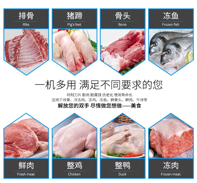 ◆切骨機(jī)為平面式機(jī)身設(shè)計(jì)、全不銹鋼封板,符合食品衛(wèi)生標(biāo)準(zhǔn)