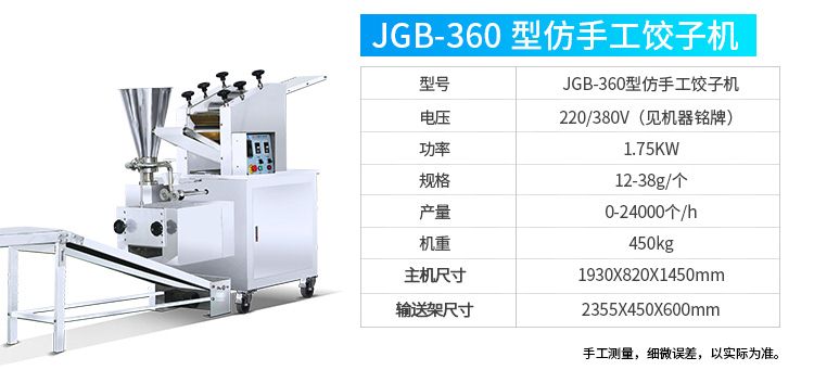 JGB-28型小型餃子機可包蒸餃、煎餃、水餃。仿手工包合,保持了餡和皮的原汁原味。可包米面皮、薯條粉皮等特殊材質餃子。任何葷、素餡料都可包制。外觀小巧、精致,操作簡單。本機提供免費上門培訓指導、安裝、調試、面點工藝傳授。