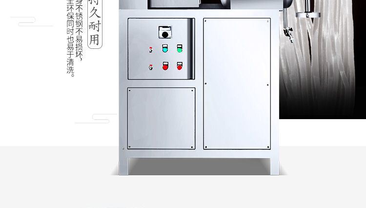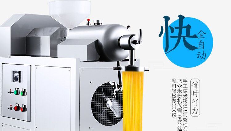 改進型米粉、米線專用機,裝有自動溫空裝置,整個生產(chǎn)過程設(shè)備均在恒溫狀態(tài)下運行,自動化程度高,操作簡單,l人即可生產(chǎn)??缮a(chǎn)米粉、米線、桂林米粉、過橋米線、年糕等產(chǎn)品。各種形狀都可生產(chǎn)(圓、扁),加工食品外表光滑,厚薄、寬窄、粗細(xì)均勻可調(diào),筋軟適度,有彈性,口感柔軟、味道純正。