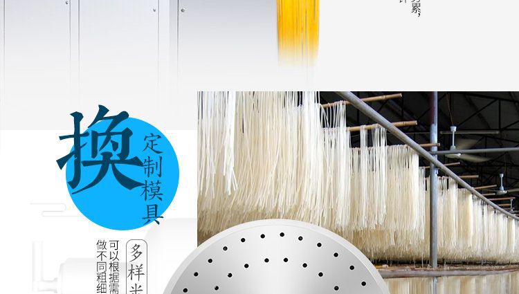 ◆ 米粉機生產(chǎn)多樣性可生產(chǎn)米粉、米線、粉絲、粉條、年糕、玉米面條、各種雜糧粉絲、各種面條、雜糧面條、彩色面條以及以紅薯、玉米、大豆、蠶豆等制成淀粉為原料的等多種食品而且每種食品厚薄、粗細(xì)等規(guī)格可根據(jù)需要任意調(diào)整。