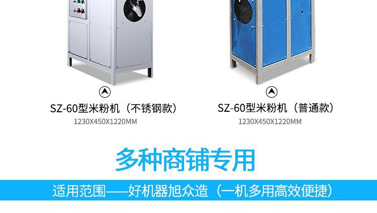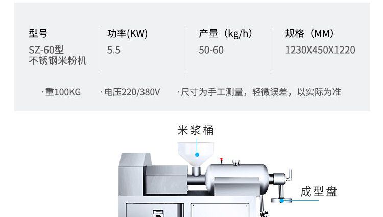 SZ-60不銹鋼米粉機,可生產(chǎn)米粉、米線、桂林米粉、過橋米線、年糕、糍粑等產(chǎn)品。各種形狀都可生產(chǎn)(圓、扁),加工食品外表光滑,厚薄、寬窄、粗細(xì)均勻可調(diào),筋軟適度,有彈性,口感柔軟、味道純正。