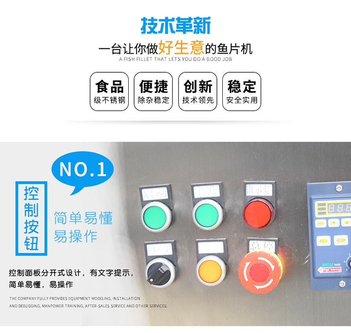 1、魚片斜切一次成型,可加工大、中、小各種鮮魚。