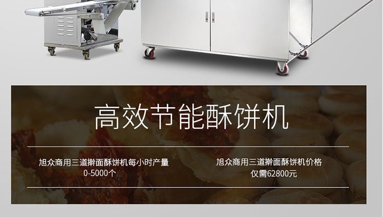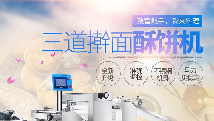 XZ-15C三道搟面酥餅機(jī),仿手工制作面食產(chǎn)品的機(jī)型,占地面積小,重量輕,運(yùn)用搟面杖壓面和打擊面團(tuán),以保證高面筋性和面帶的密度,并綜合考慮面食的口感而研發(fā)??缮a(chǎn)東北糖酥餅,東北大香酥餅,蘇式月餅,芝麻餅,鮮花餅,老婆餅。購(gòu)機(jī)免費(fèi)提供工藝技術(shù)