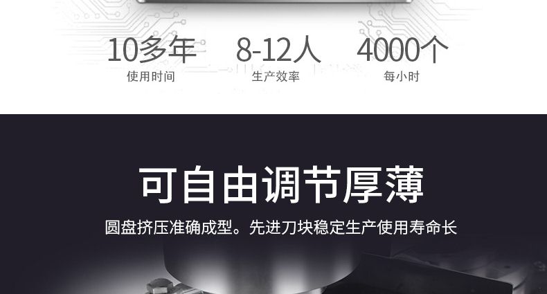 ◆采用圓盤擠壓搓圓技術,結合面點工藝要求,使得制品外形美觀,大小均勻,表面光亮細膩;